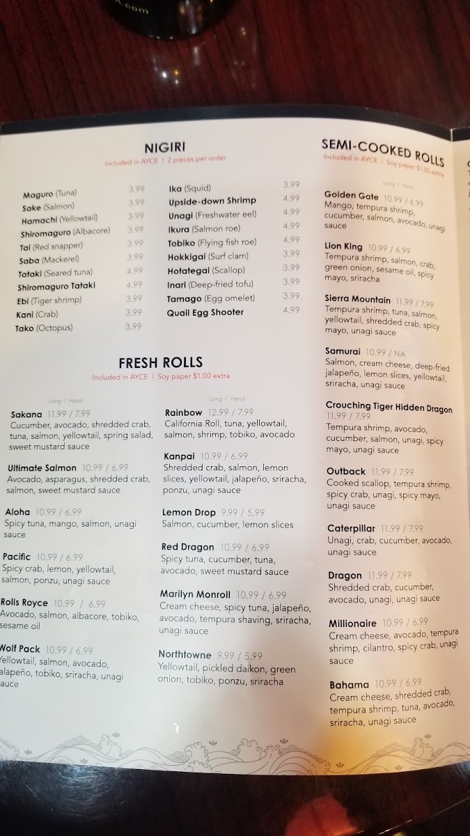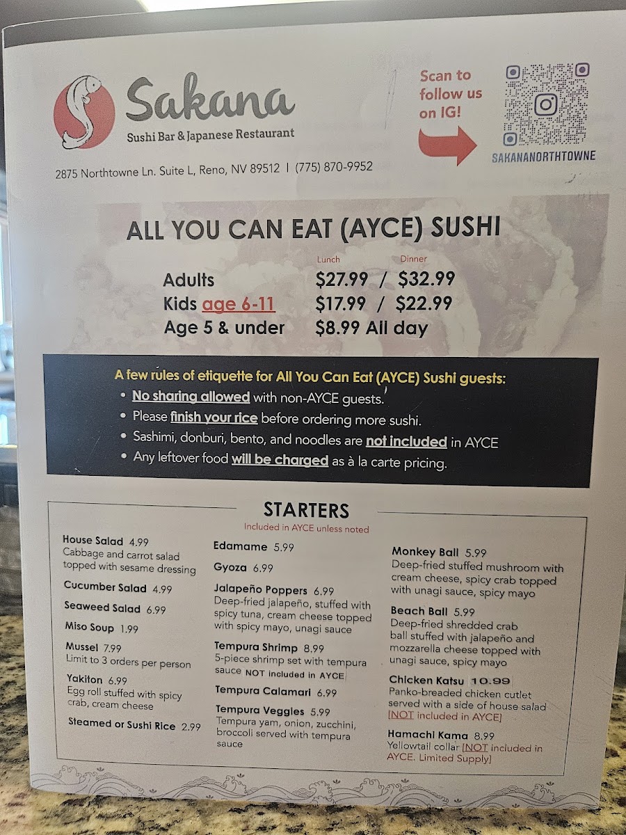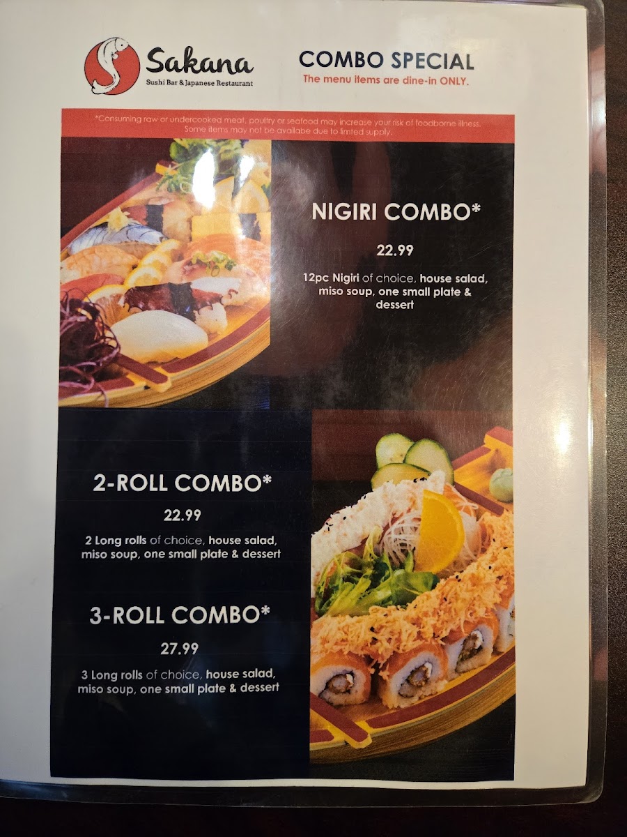 At Sakana Sushi, the menu offers a delightful fusion of traditional and innovative sushi creations that will transport your taste buds straight to Japan. From expertly crafted rolls to fresh sashimi, every dish on the Sakana Sushi Menu is made with the finest ingredients. Whether you're craving a classic California roll or want to try something unique like the chef's special rolls, there’s something for every sushi lover. The variety extends beyond sushi, offering tempting appetizers, savory tempura, and mouthwatering teriyaki dishes. Perfect for a casual dinner with friends or a special night out, Sakana Sushi invites you to explore the tastes of authentic Japanese cuisine in a welcoming atmosphere. Whether you're a sushi aficionado or new to Japanese flavors, the menu is designed to satisfy all appetites with a perfect balance of flavors and textures.